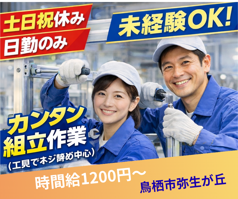 給与 1,200円鳥栖市弥生が丘【土日祝休み×日勤のみ】未経験OK!アルミフレームの組立作業|安定業界で長く働ける(t178)(鳥栖市弥生が丘