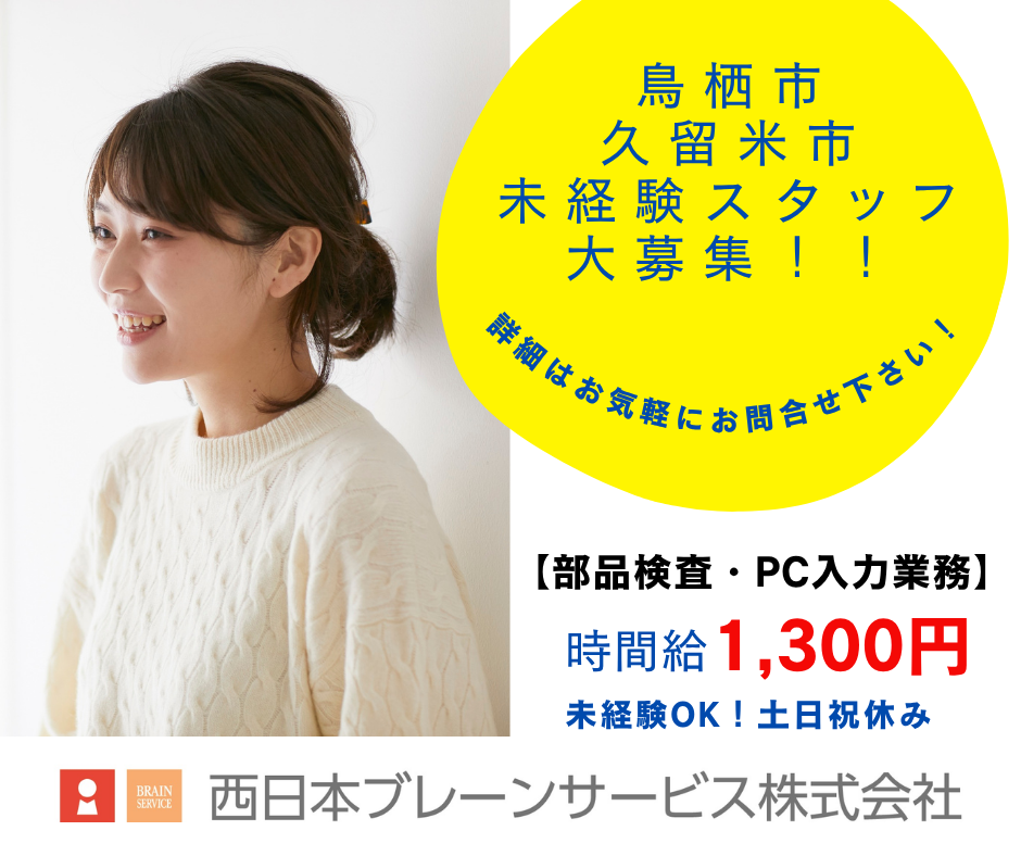 給与 1,300円時給UPキャンペーン→時間給1300円/鳥栖市 工場内 製造・検査・PC入力の軽作業求人|日勤・未経験OK・土日祝休み/t43(*鳥栖市藤木町