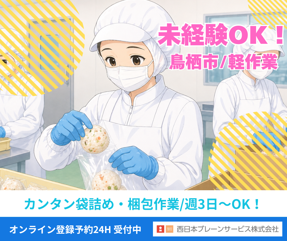 給与 1,100円鳥栖市/週3日~・扶養内OK/人気のカンタン軽作業/冷凍おにぎりの包装・箱詰め作業(t181)(鳥栖市藤木町/JR鳥栖駅近く